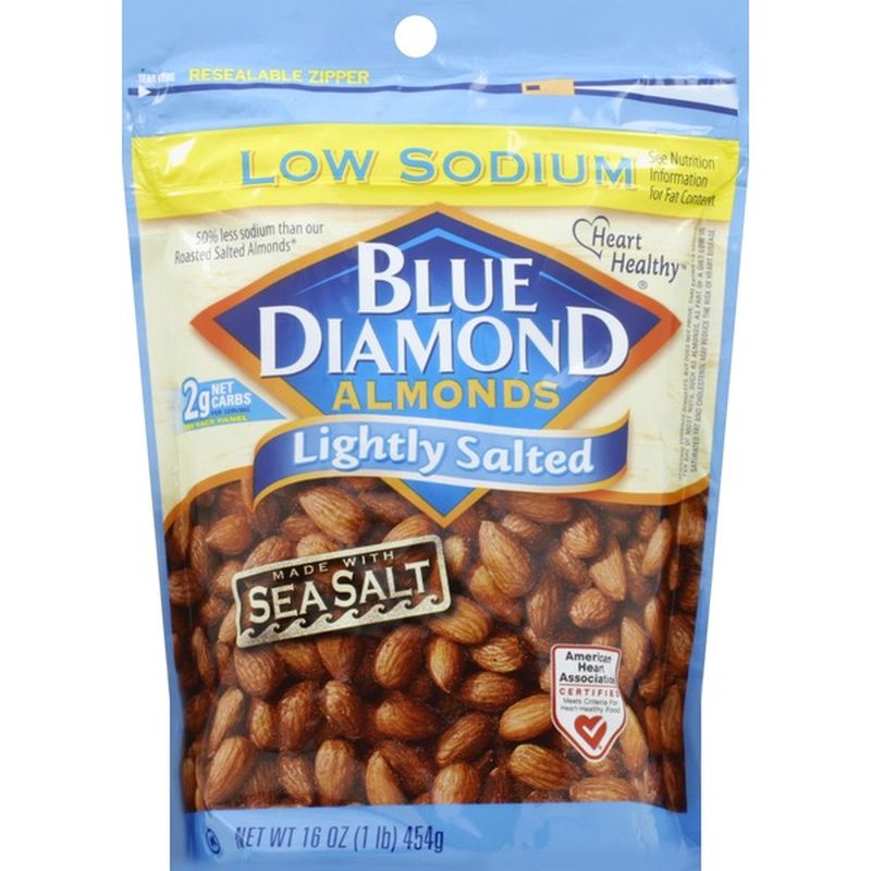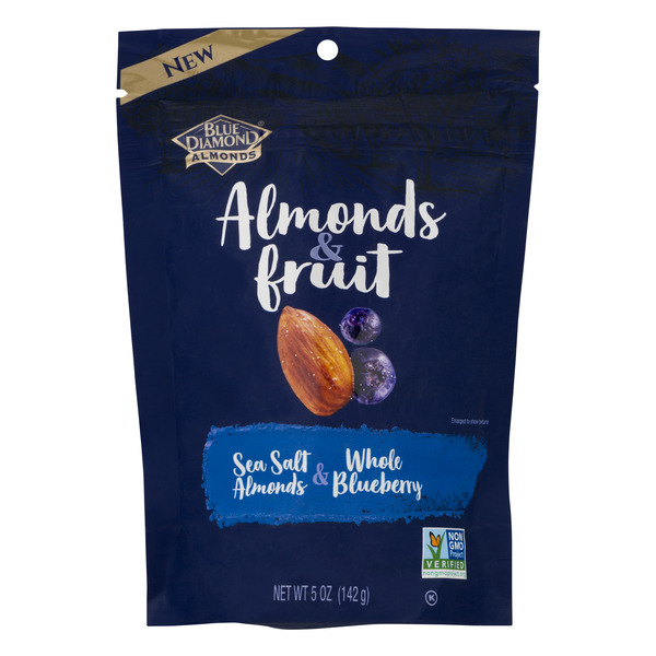 While other roasted almonds have a lot of salt, these are lightly salted and are perfect for me. | blue diamond sea salt almonds & whole blueberry fruit 5oz 142g bag kosher 4/7/21. Sea salt almonds & whole blueberry. With an abundance of nutritional benefits and 6g of protein per serving, these almonds are a satisfying snack that you can feel good about.